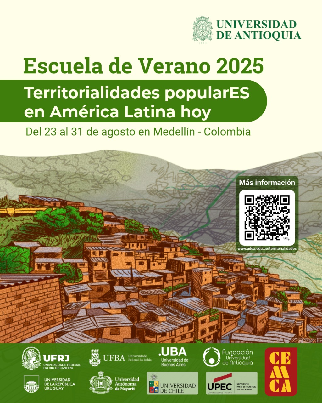 La Escuela de Verano: territorialidades popularES en Am茅rica Latina hoy es un evento de ciudad dinamizado por una juntanza latinoamericana que act煤a como red constituida representantes de universidades p煤blicas de Colombia, Chile, Uruguay, M茅xico, Brasil, Argentina y Francia; servidores p煤blicos y habitantes de barrios populares.